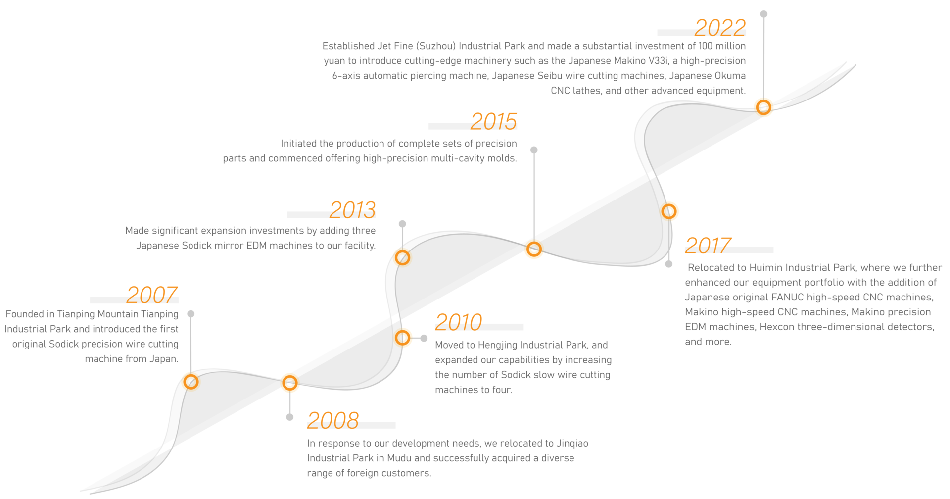 2007年9月,JET成立于中国经济强劲持续增长的长三角地区,坐落于风景秀丽的太湖之滨苏州吴中区。